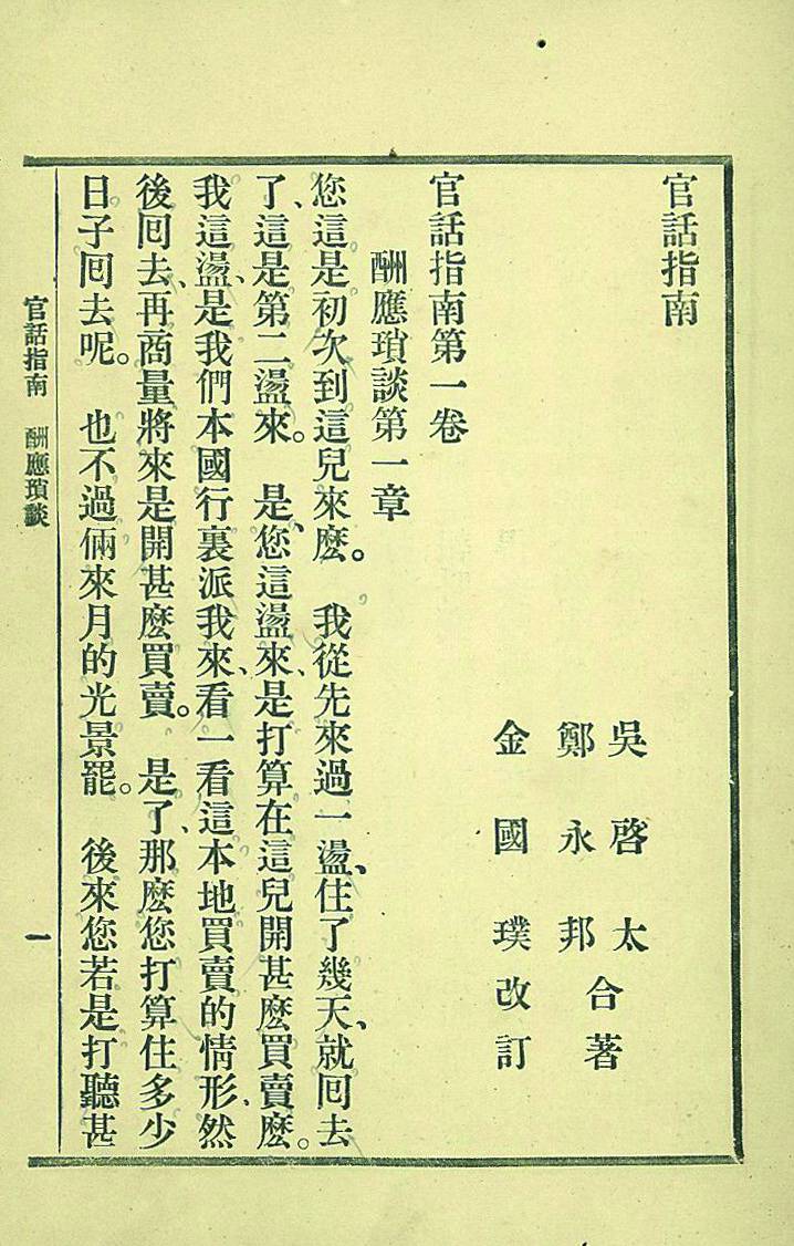 《改訂官話指南》書影(來源:日本關西大學アジア文化研究センター鱒澤彰夫氏寄贈圖書)