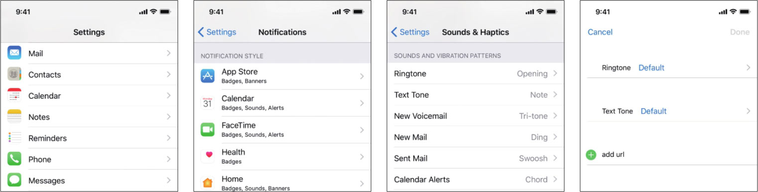 在表格视图下,iOS还定义了基本(默认)、小标题、右侧详情和左侧详情四种比较常用的单元格样式。每种单元格样式都有着最适合展示的信息类型。基本(默认)样式如下图一所示,行标题左对齐,可选择在每行的左侧添加图片,在无需补充说明信息时,使用基本(默认)样式是一个不错的选择。小标题样式如下图二所示,在每行中都有两行左对齐的文字,第一行为标题,第二行为小标题,在每行的标题有较大视觉相似性时,小标题就能帮助用户较好地区分不同的行。右侧详情样式如下图三所示,在同一行上,标题左对齐,小标题右对齐。左侧详情样式如下图四所示,标题统一左对齐,标题同一行右侧为左对齐的小标题。