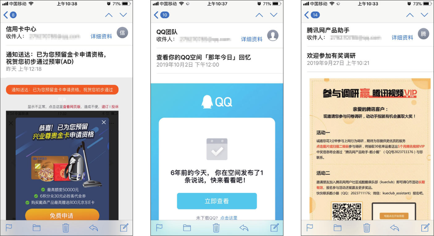 Web视图可以直接在App中加载并展示网页内容。iOS系统内置的邮件App就使用了Web视图来展示邮件中的HTML内容,如下图所示,可以看到与文本视图相比,Web视图下的内容显得更丰富。