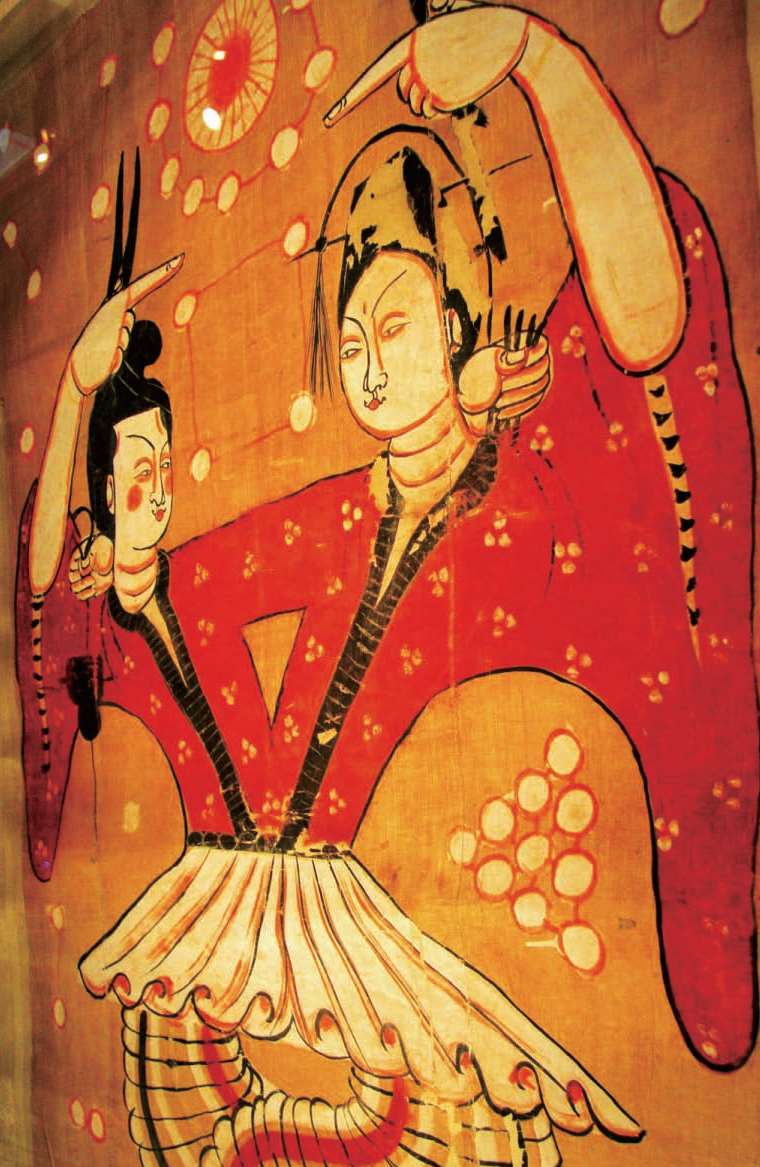 女娲 又称女娲氏,娲皇。她是我国传说时代的远古氏族首领,后逐渐成为了我国神话中的人类始祖。女娲的主要功绩为抟土造人,以及炼石补天。其他的功绩包括发明笙簧和规矩,以及创设婚姻。后世女娲成为民间信仰中的神祇,她被作为人类始祖和婚姻之神来崇拜。