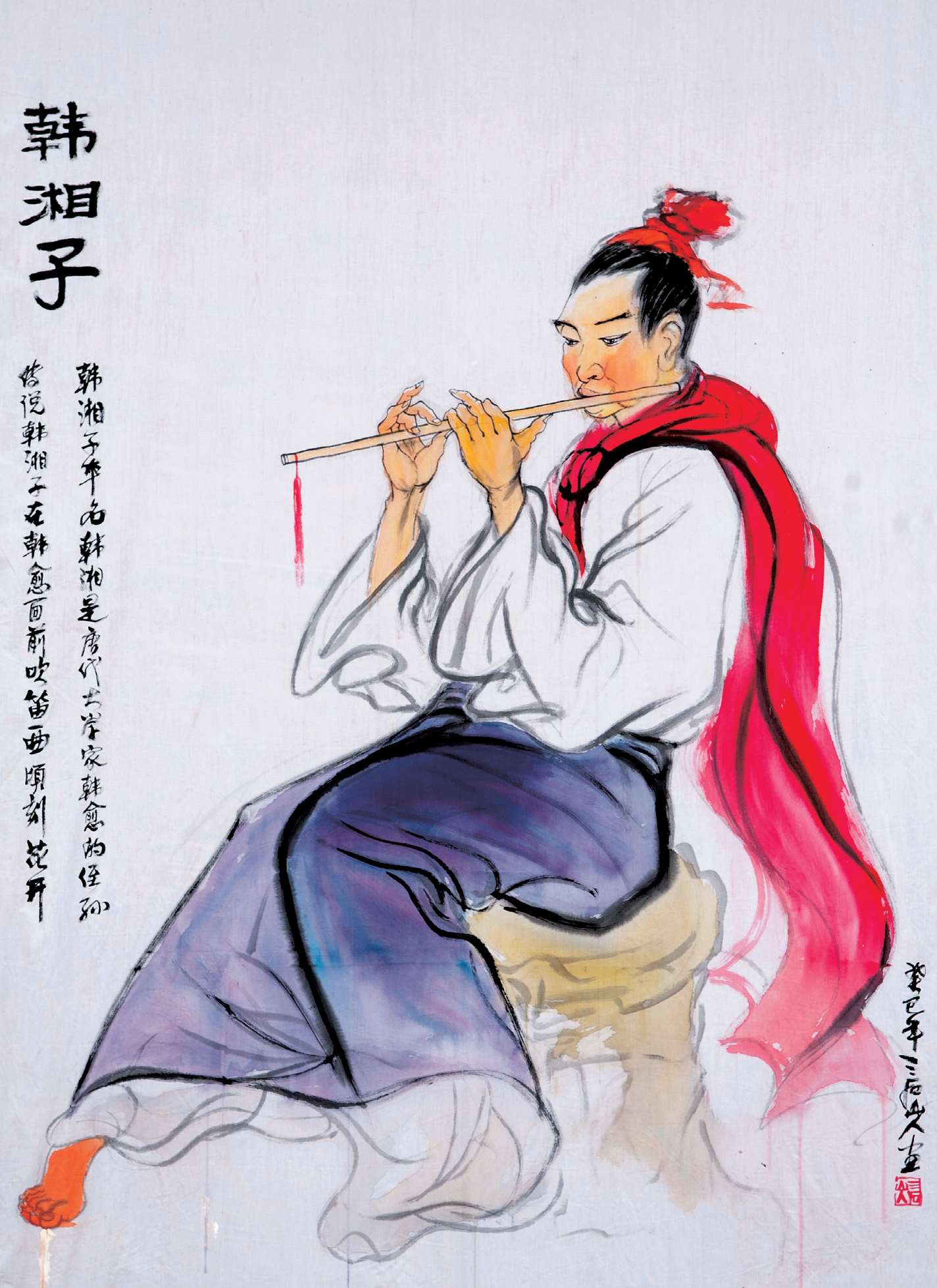 ■ 韩湘子 字清夫,是民间故事的“八仙”之一,拜吕洞宾为师学道。道教音乐《天花引》,相传为韩湘子所作。又说韩湘子是唐朝韩愈的侄孙子。生性放荡不羁,不好读书,只好饮酒,世传其学道成仙。