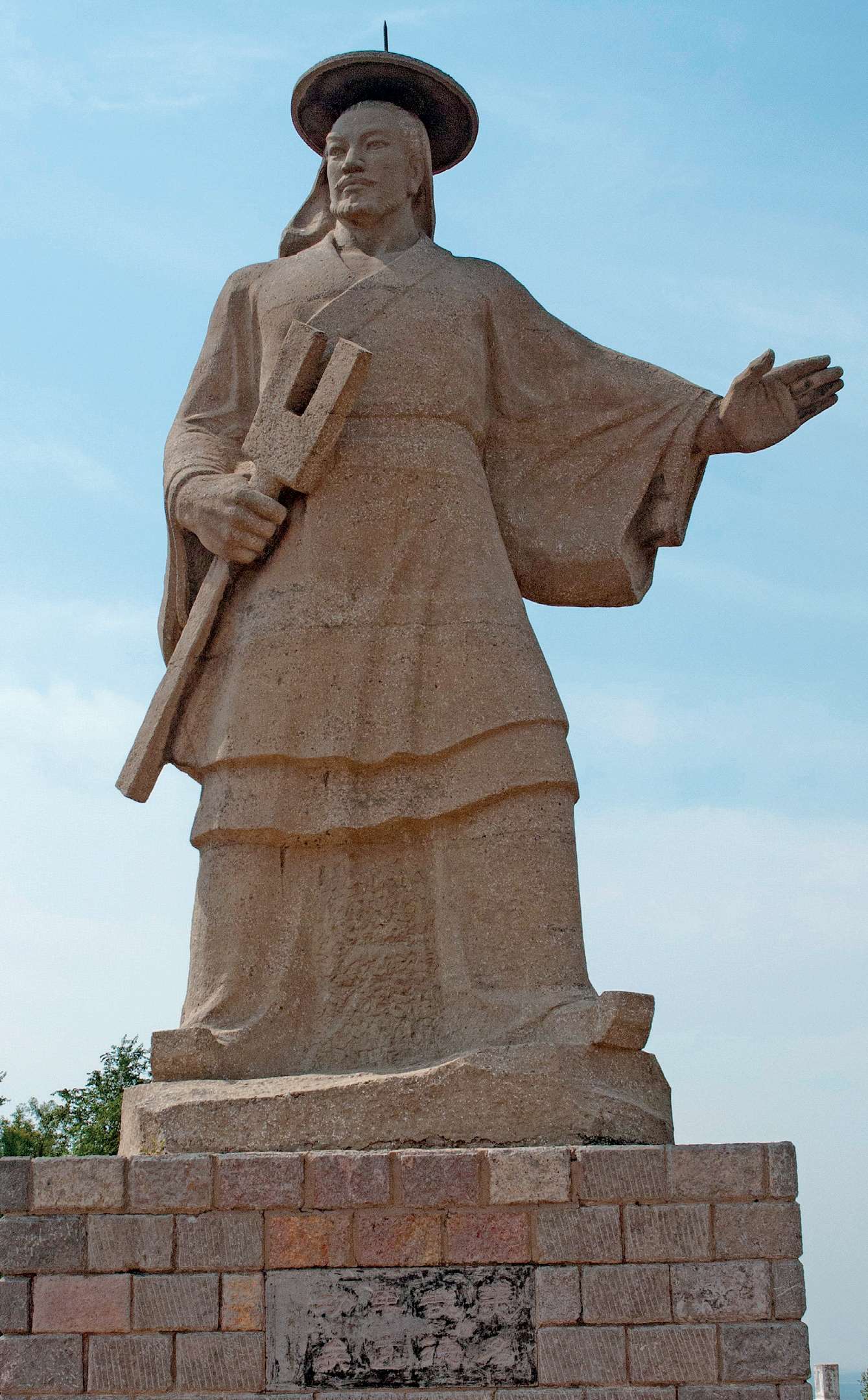 ■ 大禹 姒姓,名文命,后世尊称为大禹,也称帝禹,为夏后氏首领,夏朝第一任君王,于公元前2029年至公元前1978年在位。他是黄帝的七世孙、颛顼的五世孙。他是传说时代与尧、舜齐名的贤圣帝王,最卓著的功绩是治理滔天洪水和划定我国国土为九州。