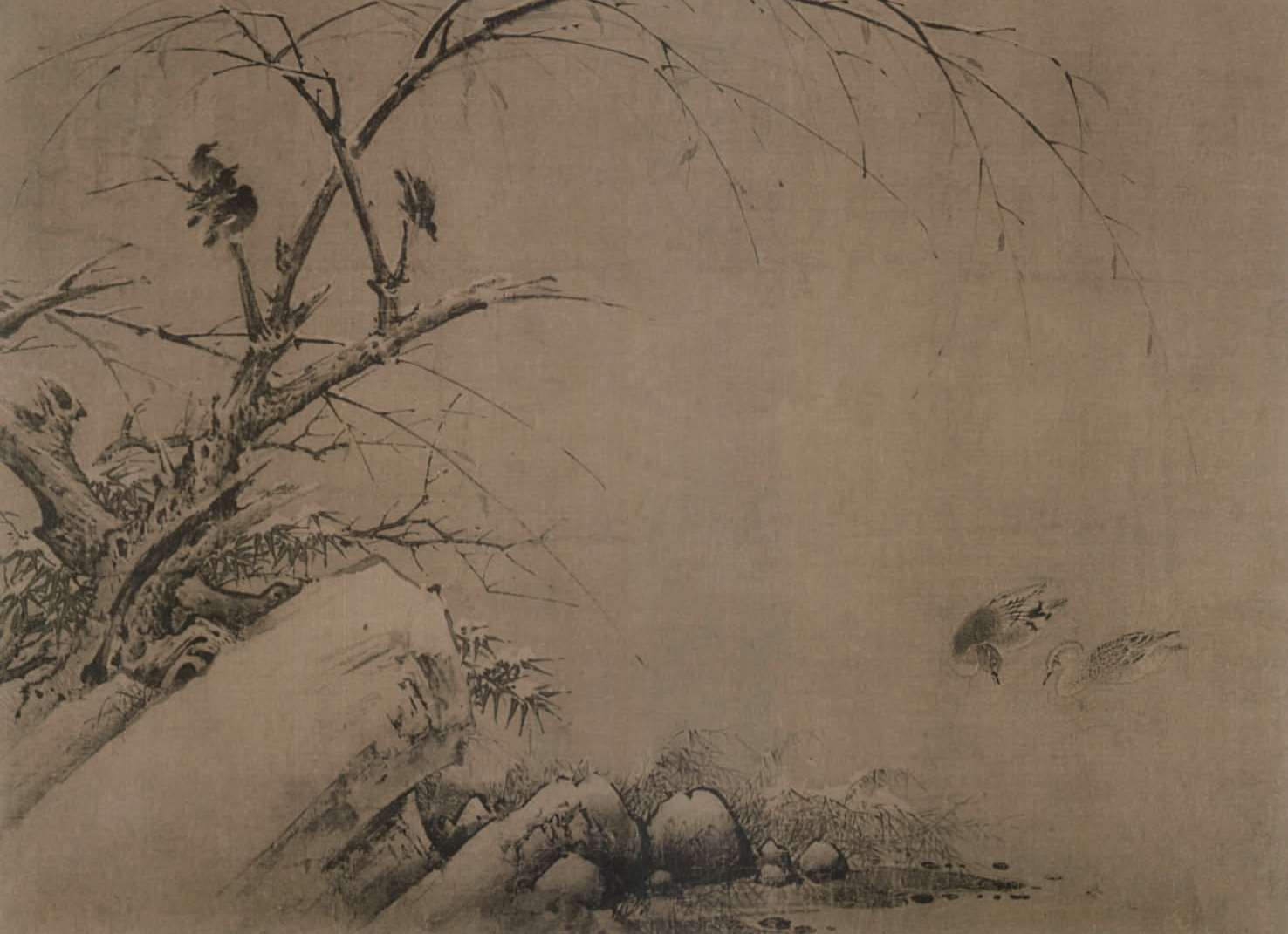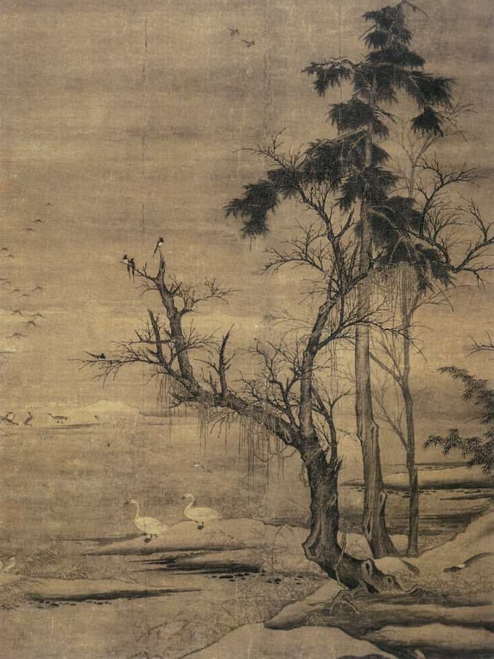 黄筌作品《湖岸寒禽图》