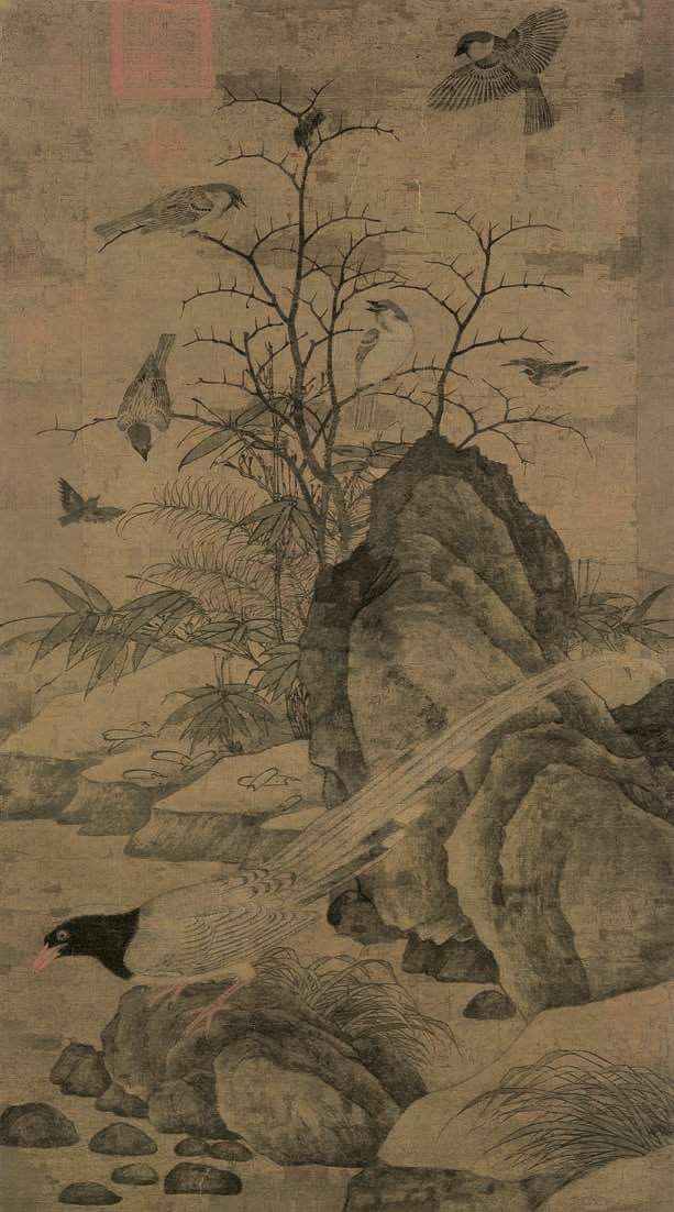 具有黄筌画风的喜鹊图