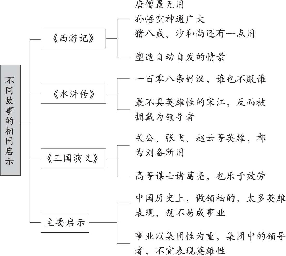中国人很喜欢《西游记》《水浒传》和《三国演义》,这三部著作具有同样的启示(如图2-6),对中国人的领导有十分重大而深远的影响。