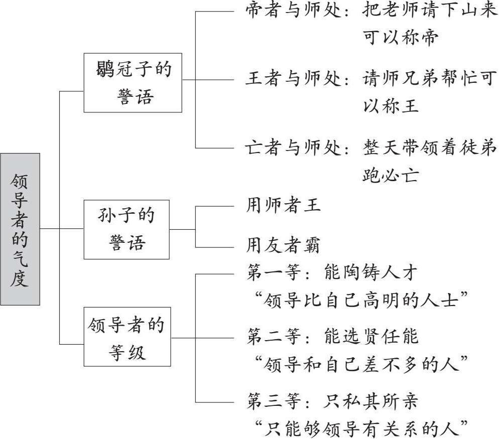 三流的领导者,不但请不动老师,也请不动师兄弟,只能够带领自己的学生。这固然可以享受“有事弟子服其劳”的乐趣,却限于弟子的才能经验,很难做出重大的突破,不可能有什么成就,更谈不上持久。