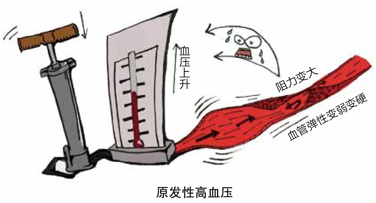 高血压包括原发性高血压和继发性高血压。 大约95%的高血压都是原发性高血压 ,如无特殊说明,下文中的高血压都指原发性高血压。高血压是血液在血管中 流动时阻力增大 ,心脏需要克服较大的阻力才能把血液输送进血管的一种疾病,表现为全身动脉阻力增高( 动脉壁增厚、变硬,弹性降低,动脉管腔狭窄甚至闭塞是导致这种阻力增高的因素 )。如果患者的血压长期过高,不仅会影响到心、脑、肾的功能,最终还可能会导致这些器官功能衰竭。