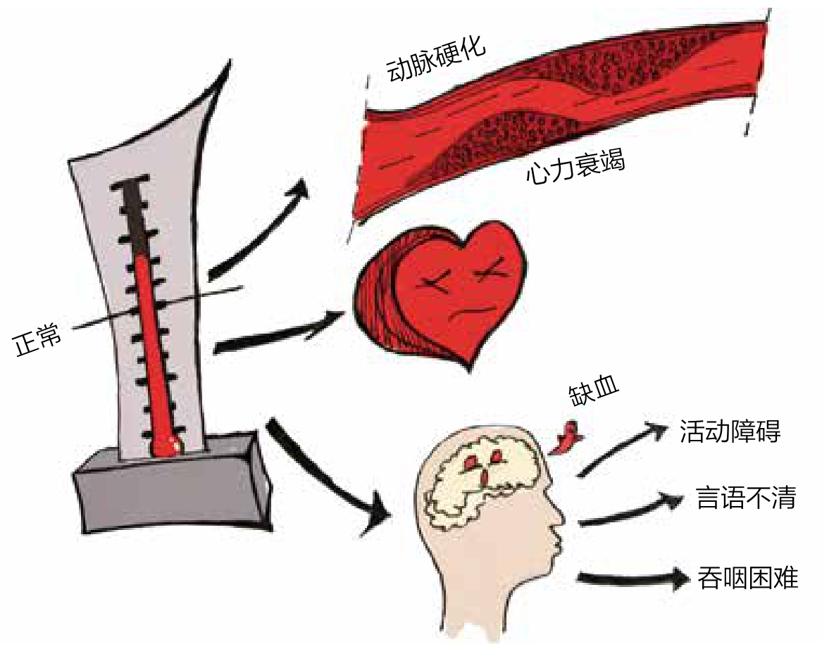 对于心脏的影响,长期高血压最终会导致 心绞痛、心肌梗死、心力衰竭及猝死 等。