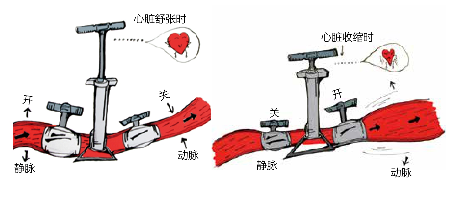 使血液不停流动的 原动力来自于 心脏搏动,心脏收缩时血液流入大动脉。心脏舒张时,血液由大静脉回流入心脏。而被我们称为大动脉的血管是富有弹性的, 心脏收缩射血时 ,推动血液由心脏进入大动脉,大动脉扩张容纳被排出的血液。 当心脏舒张时 ,血液虽然失去了来自心脏的推动力,但是 大动脉回缩产生挤压力 ,会继续推动血液向前流动。简单来说,血液就是靠 心脏推动和血管收缩产生的动力 交替作用,周而复始地在人体内循环流动。