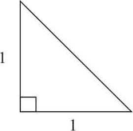 上文中我们曾经说到,毕达哥拉斯发现了以其命名的毕达哥拉斯定理的一般形式。如果应用此定理到两个直角边为1的等腰直角三角形(图1-4-1),其斜边的长度是多少呢?根据毕达哥拉斯定理,这个长度的平方等于2。显然,我们不可能找到一个满足条件的整数,但是,是否能够找到一个分数适合该条件呢?这个课题引起了毕达哥拉斯一个学生希帕索斯的兴趣并进行了深入研究。