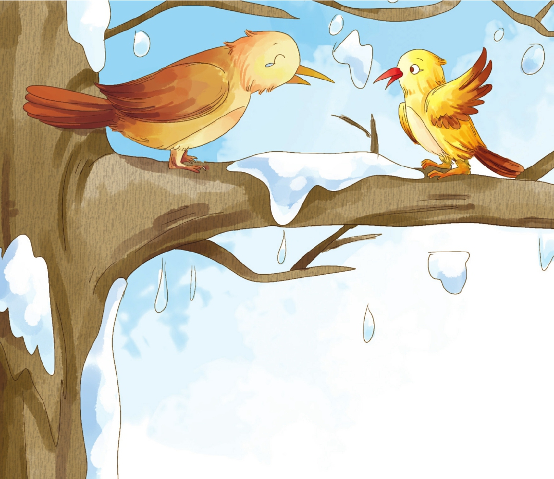 “亲爱的,还早着哩,”麻雀说,“天气还没有真正变暖呢,我们还要遭不少罪。”