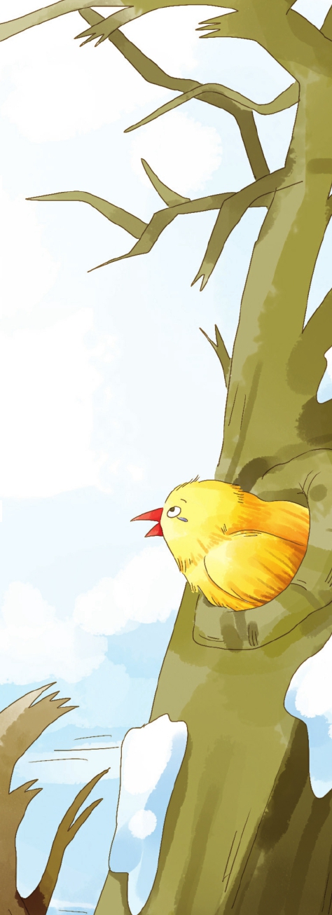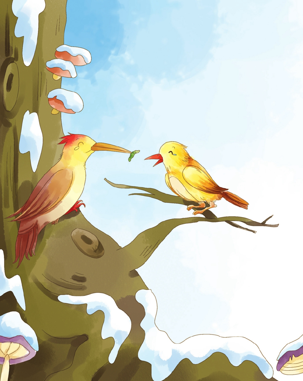好在啄木鸟请他到自己的窝里去,要不然小杰尼卡肯定会被冻僵。