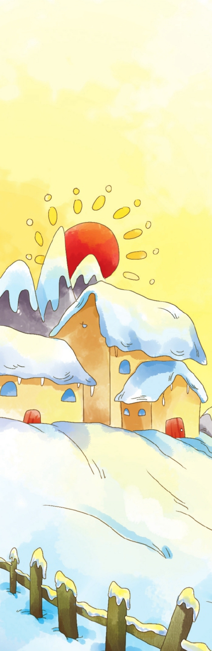 太阳公公出来了,笑得那样灿烂,光芒四射。暖和的阳光照耀着大地,一些悬挂在屋顶的小冰柱,现在开始滴答、滴答地往下淌水了。