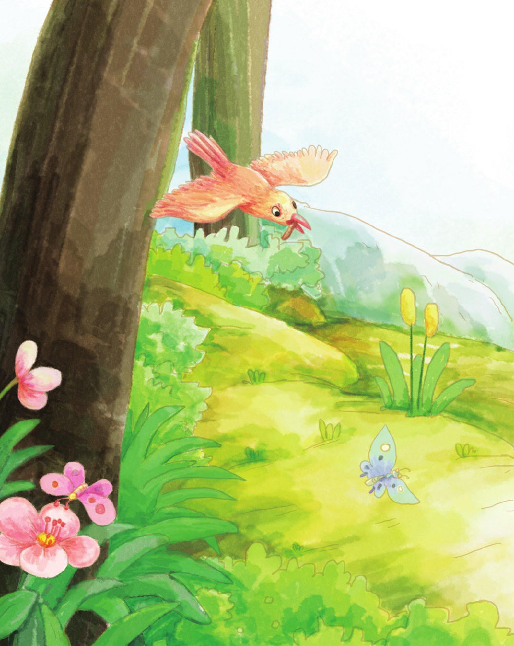太阳高高地升起来了,柔和的光线射进了树洞,浑身湿漉漉的小布谷鸟才觉得暖和了一点儿。