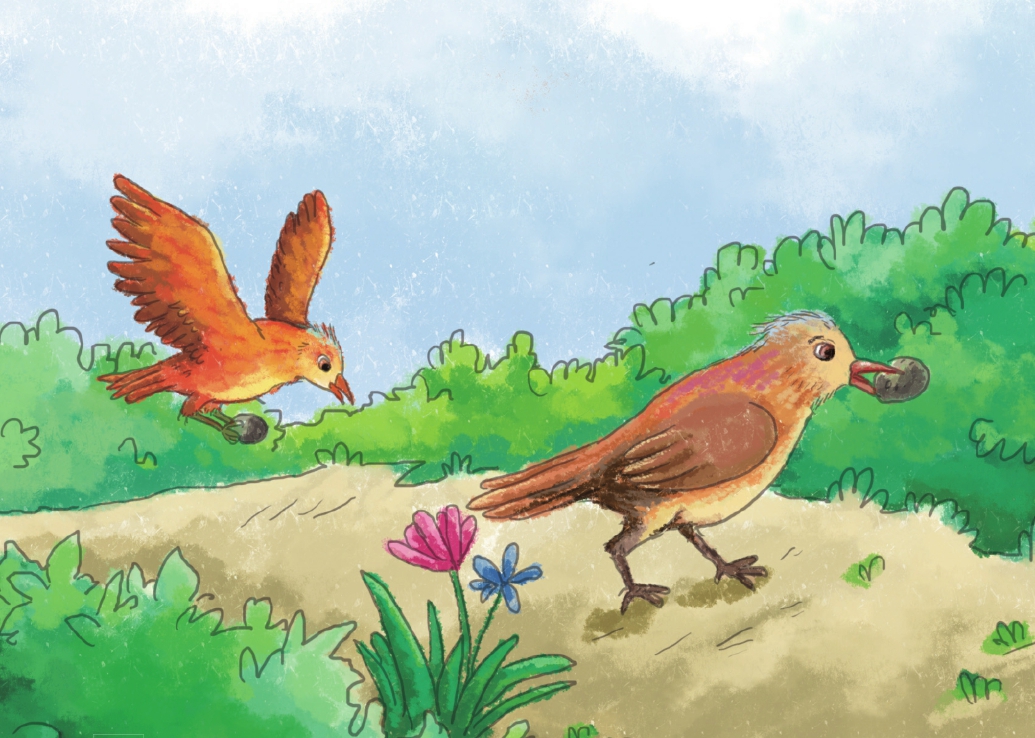小女孩灵机一动,说:“那我来吓吓小布谷鸟,你就在树洞口等,等它飞出来的时候一下子就能抓住它。”