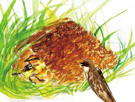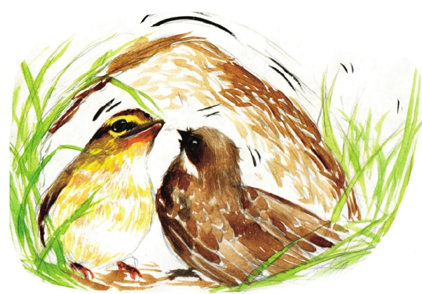 柳莺的草棚是用干草和青苔搭的。沙燕看了,高兴地说:“太好了!您这儿有地板、有墙、有屋顶,还有软羽毛絮的褥子!跟我们家里一模一样!”