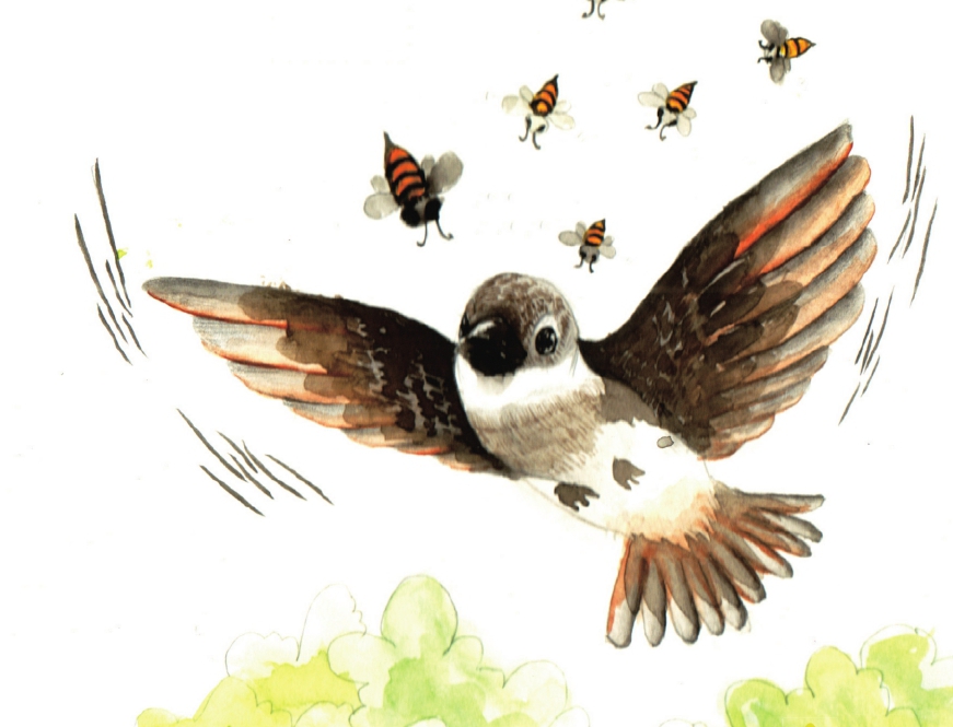 黄蜂兜着圈子飞,嗡嗡地叫,眼看就要蛰到小沙燕了!
