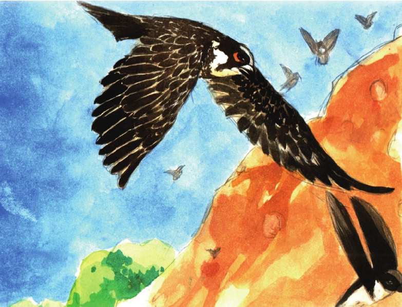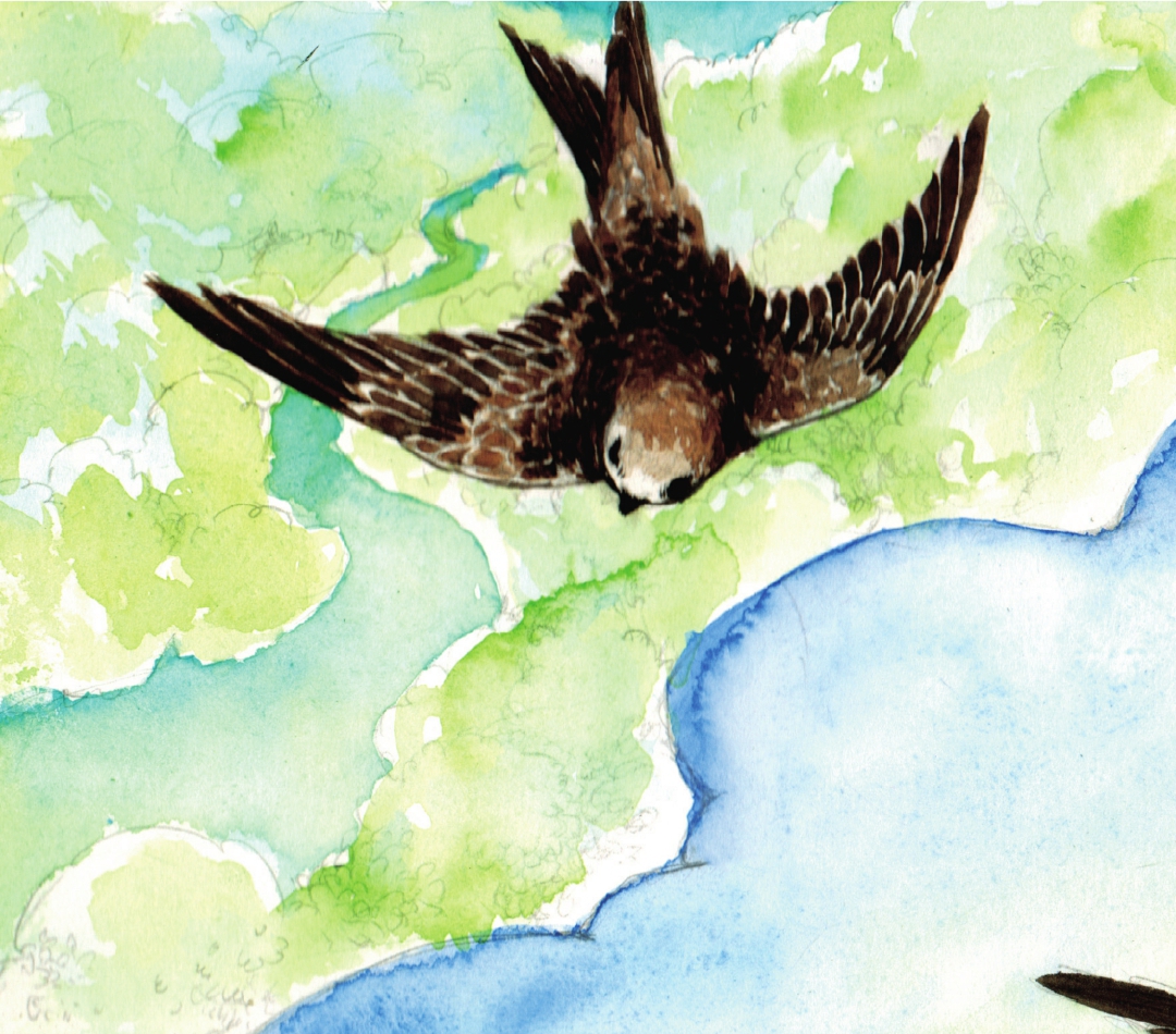 可它回头一看,那只燕隼早已不知去向。它又向周围看去,完全是个陌生的地方。再看下面,有一条小河,可那并不是家乡的那条小河。