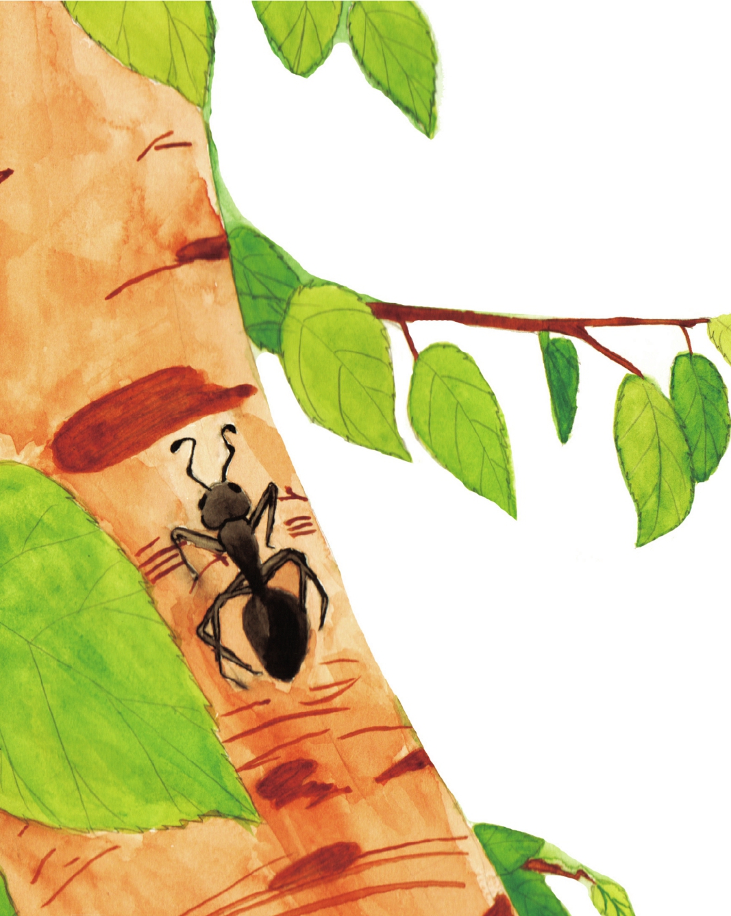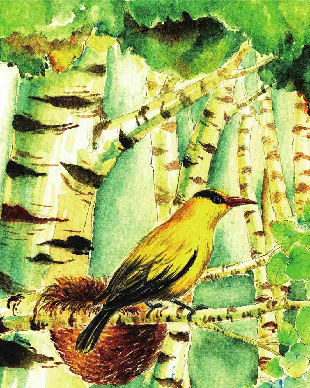 “我就是黄鹂呀,”金黄色的鸟儿回答说,“我的房子就在这儿,喏,在那棵漂亮的白桦树上。”