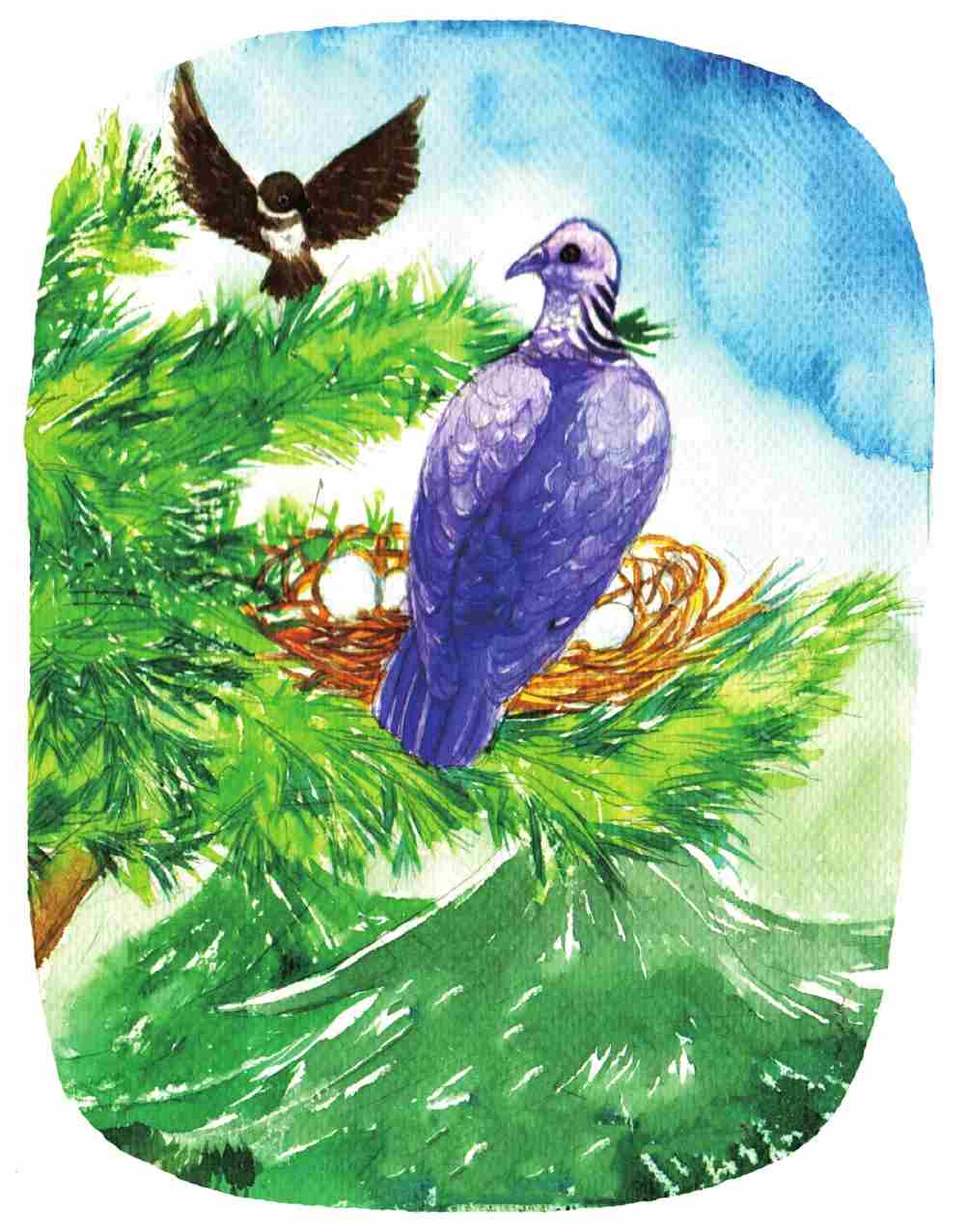 它很快就在云杉林里找到了林鸽,请求在林鸽家里过夜。