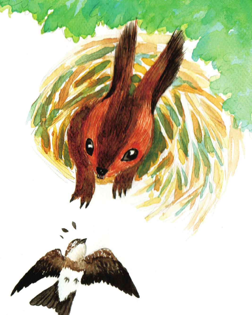 “从什么时候兴起这种事了?!半夜三更,鸟敲松鼠的门来借宿?”