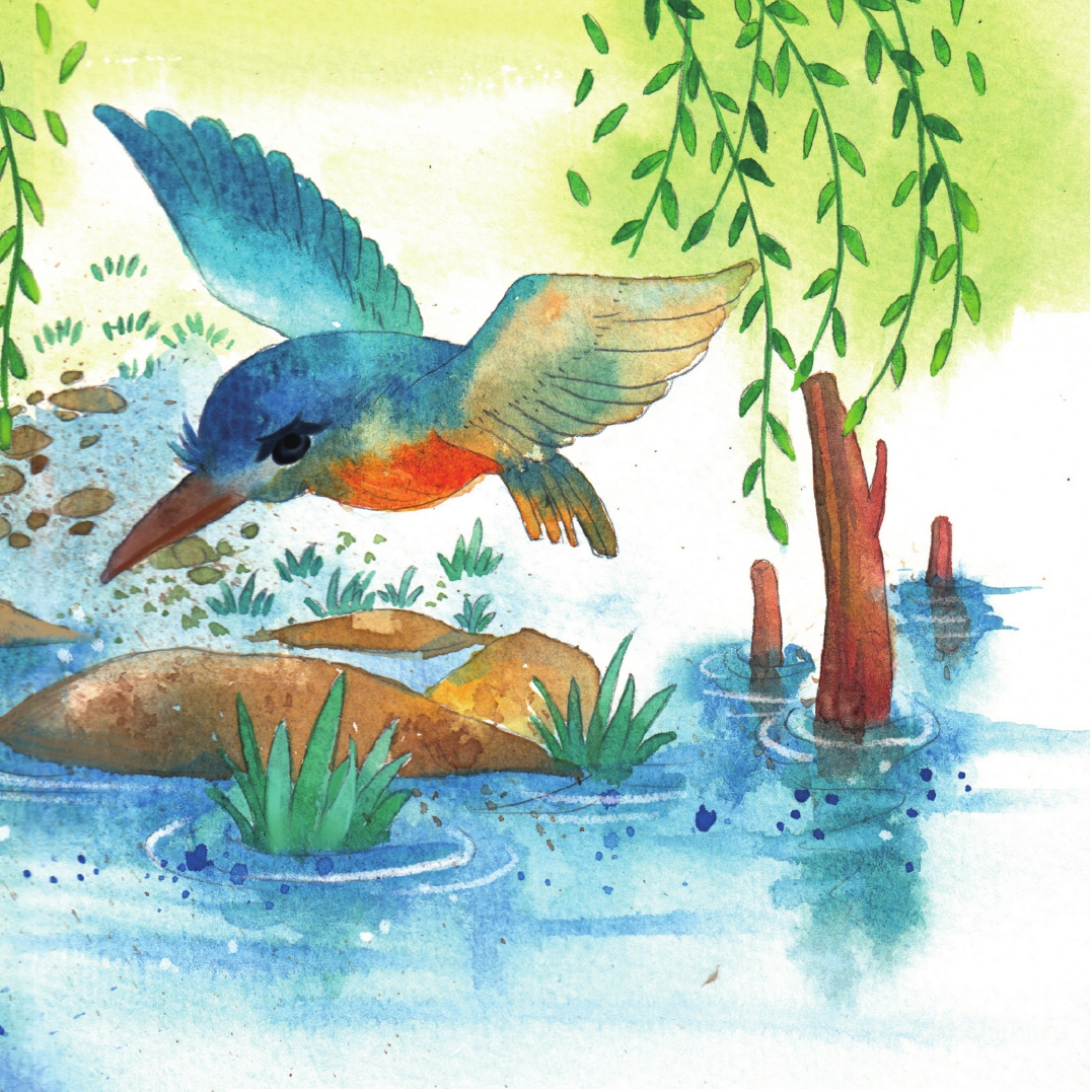 翠鸟的影子在它头上的银色天空中一闪而过,消失了。