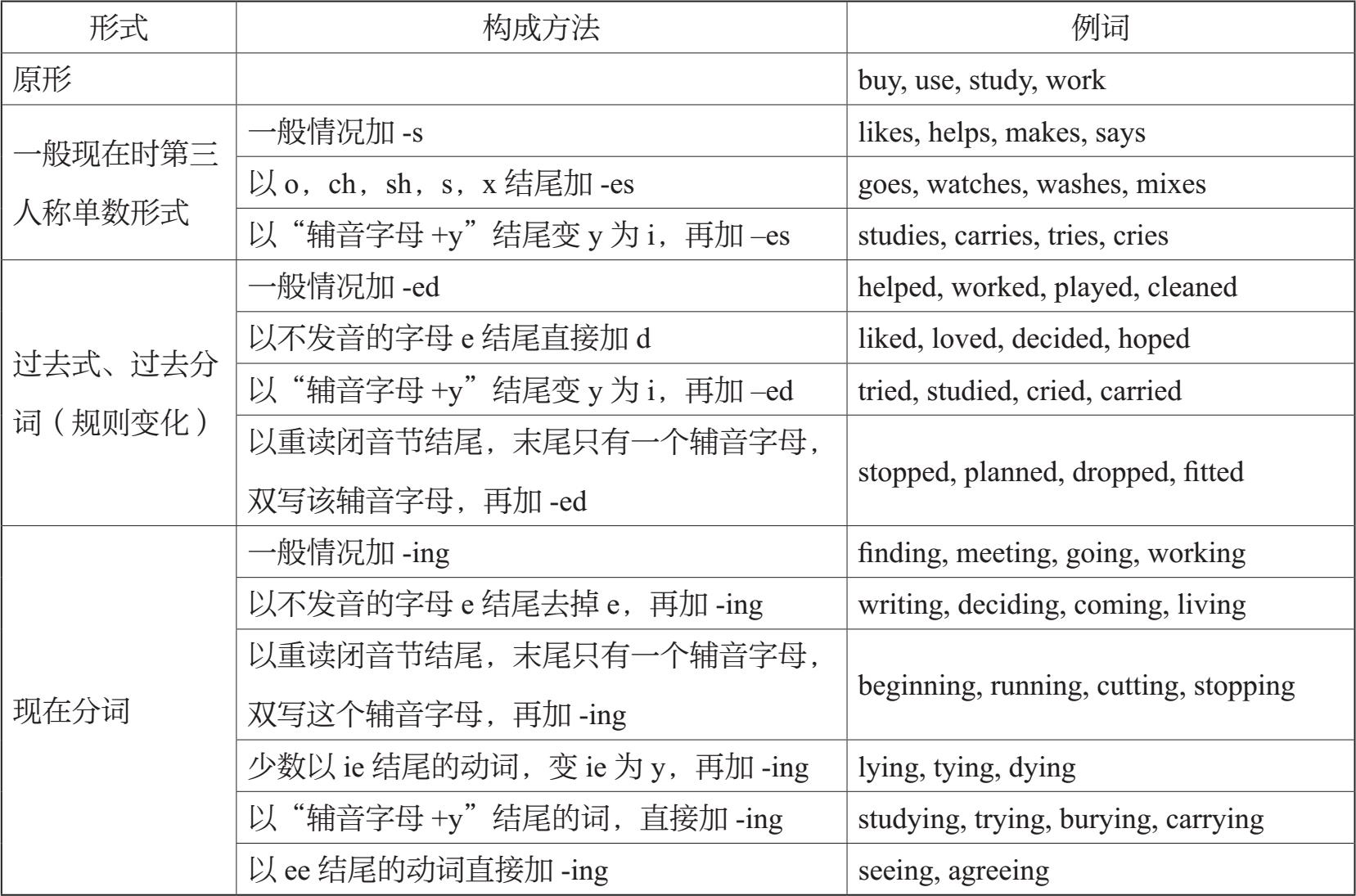 英语的动词有原形、第三人称单数、过去式、过去分词及现在分词五种基本变化形式。