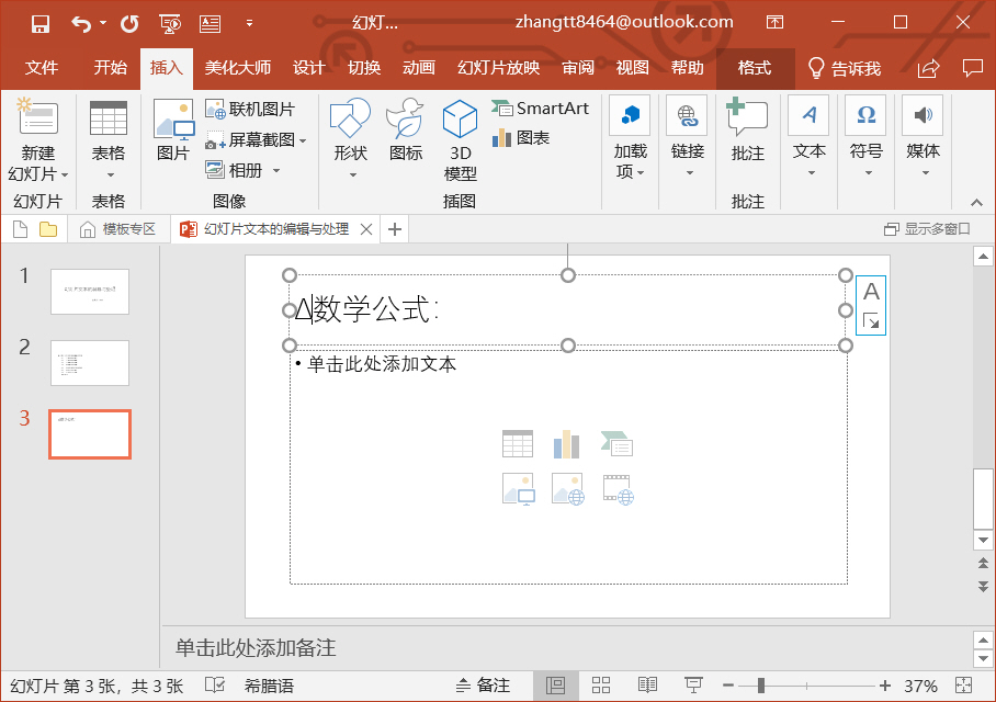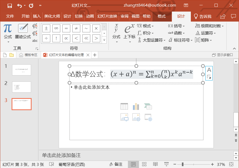 步骤5: 此时即可在幻灯片中看到插入的公式,如图3-14所示。