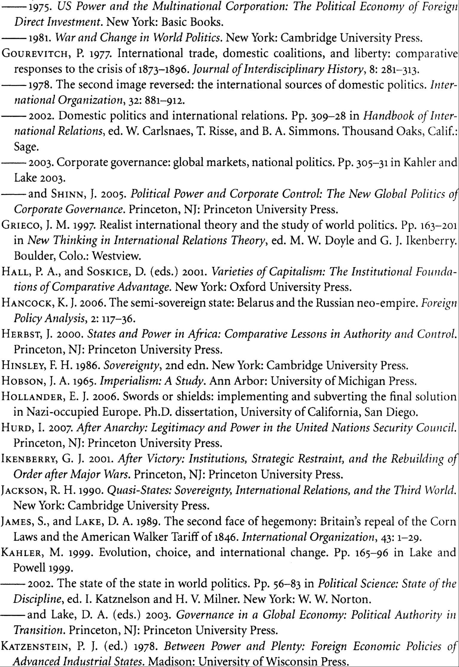 国家是世界政治中重要的行为体。无论是作为一件实用主义工具,还是因为它能够捕捉到脱离于高度国内化或第二种设想理论的系统效应,国家中心主义理论都仍有其用武之地。如果国家或国家中心主义理论仍然不可或缺,那么,对于其未来发展而言最有希望的领域是什么?其研究前沿何在?既然国家如此重要,对国家的研究可能就相当于对整个国关学科的研究。在本章最后部分,我特别指出了三个研究领域,国家在这些领域中既是研究对象也是分析单位。
