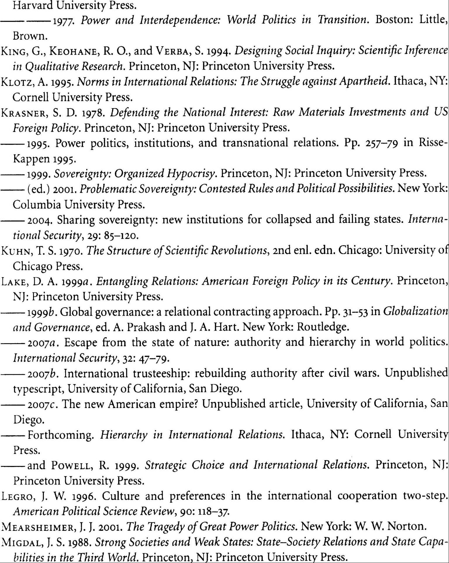 大国在世界政治中一向占有特殊地位,不仅因为它们的物质能力而且还因为其他国家给予它们的威望(Gilpin 1981,30—31),它们的这种地位在欧洲协调机制、国际联盟,尤其是联合国安理会中已经制度化(Simpson 2004; Hurd 2007)。跟随瑞士各州、美国立国最初的十三个州、澳大利亚最初独立各州以及其他联邦的脚步,今天的欧盟正形成一个新的联邦政体,其中的主权国家在有些问题领域已经把权威让渡给了一个新的等级中心(Rector即出)。欧盟不像人们经常所认为的那样独特,但对于那些认为各国最珍视自己作为国之地位的人来说却是一个挑战(Grieco 1997, 184—186)。此外,在国际社会层面,新的国际托管问题正跻身于国际议事日程之上(Bain 2003; Fearon and Laitin 2004; Krasner 2004; Lake 2007b)。