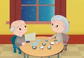 爷爷、奶奶退休在家,可以每天早上悠闲地吃早餐。