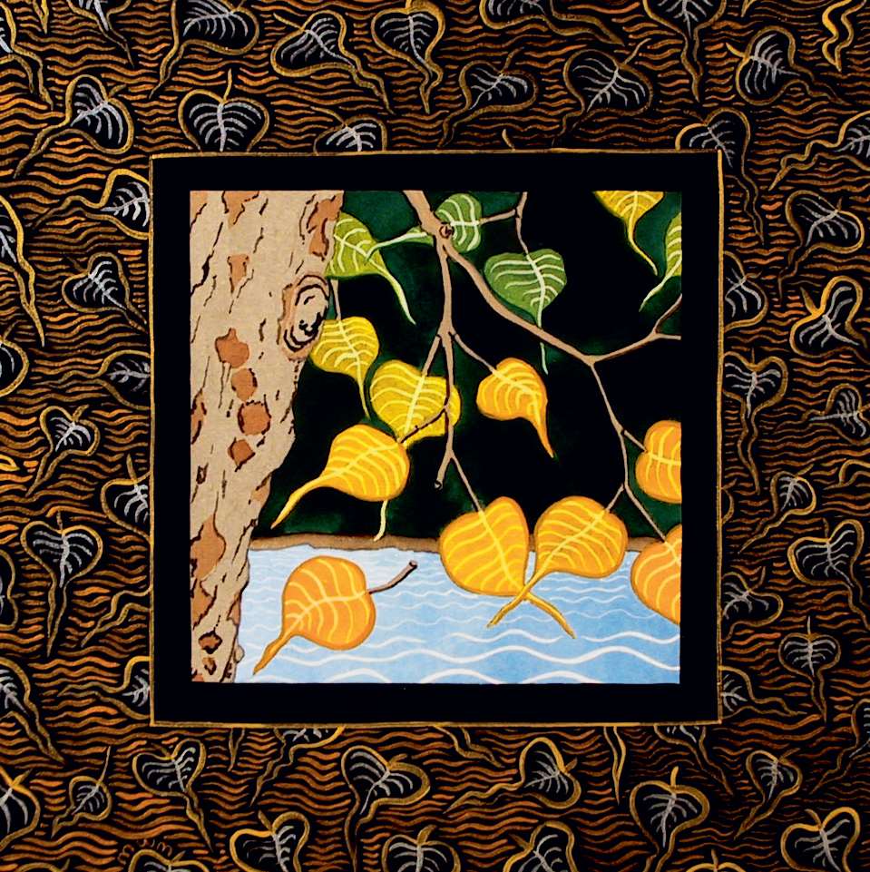 潮水变得喧嚷,河岸上荫蔽的小径,黄叶瑟瑟飘落。
