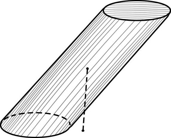 图2-2 从圆柱体的重心所作出的垂线超过了物体底面,所以它必然倒下