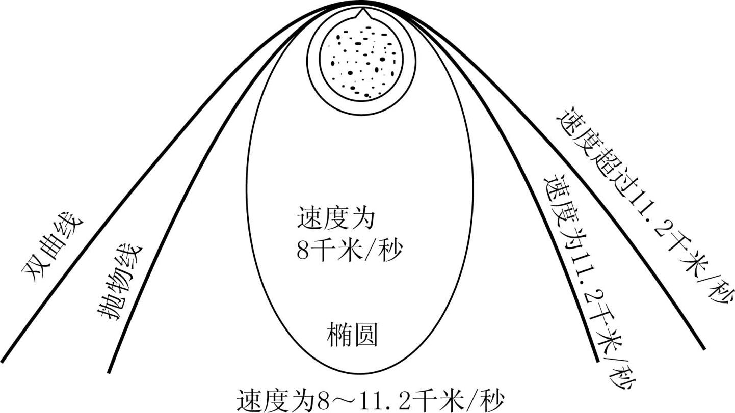 图2-12 以8千米/秒以上的速度射出去的炮弹的命运