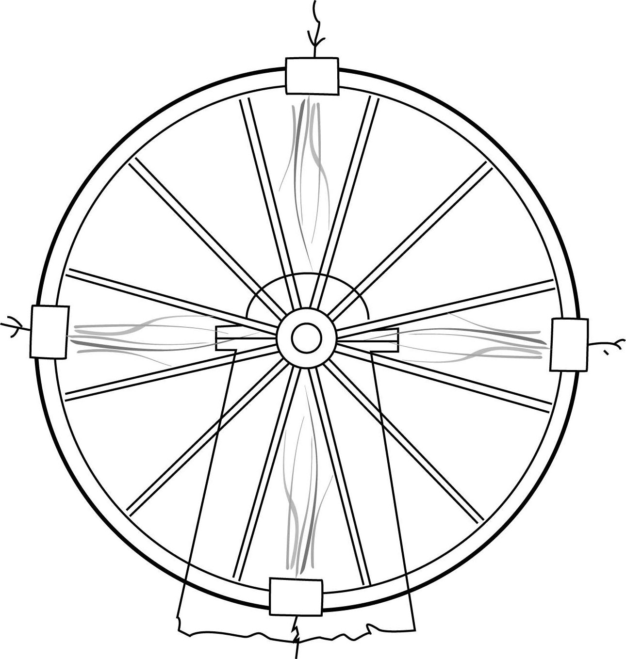 图4-5 种在旋转车轮上的幼苗,它的根伸向轴轮,而茎向外长