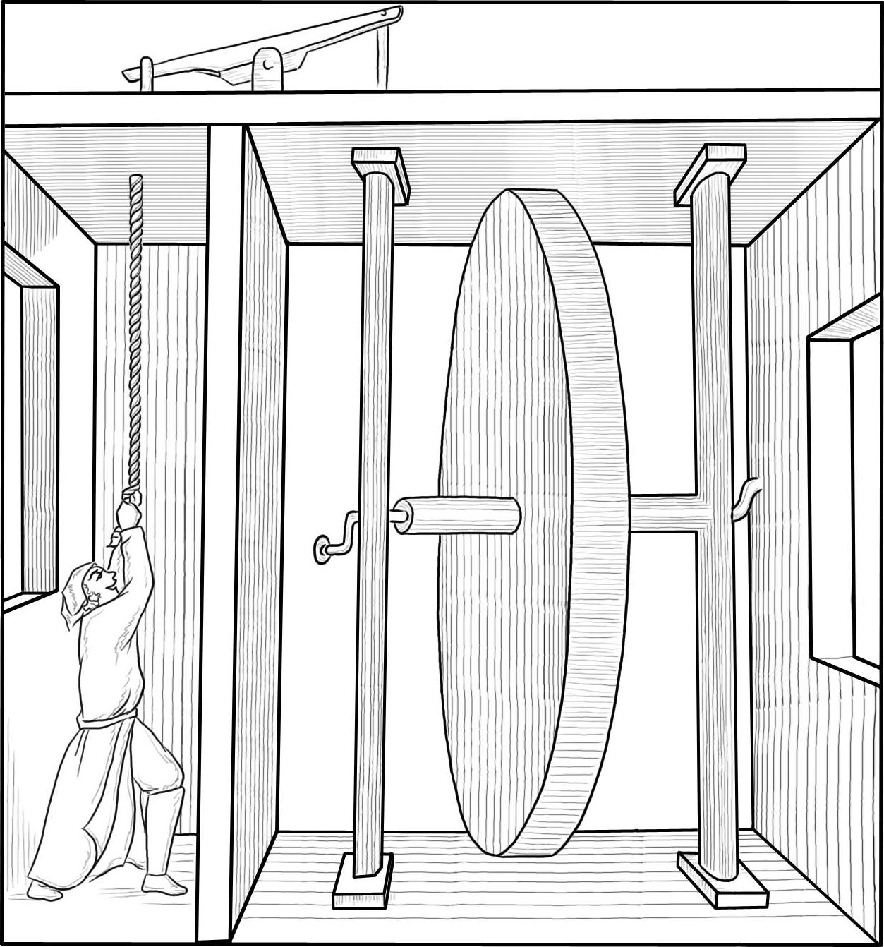 图4-12 奥菲列乌斯“自己转动的轮子”的秘密(根据古画绘制)