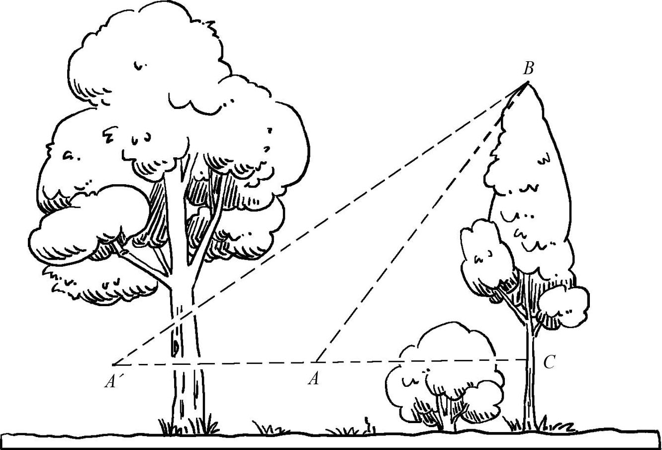 图1-13 怎样测量难以靠近的大树的高度
