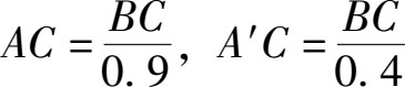 [ 解 ]答案是肯定的,这种测高仪当然可以用来测量无法靠近的大树。只要使仪器的 A 和 A′ 点与树顶 B 同处一条直线(图1-13)。假设经测量得出, BC =0.9 AC ,则在 A′ 点, BC =0.4 A′C 。由此,我们可得: