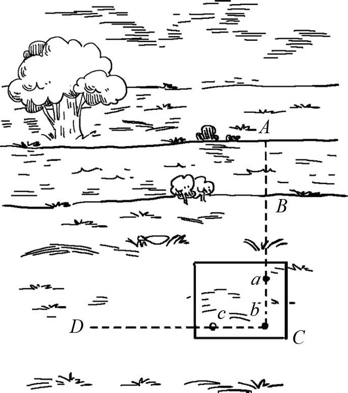 图2-3 用大头针测量仪测量河流的宽度