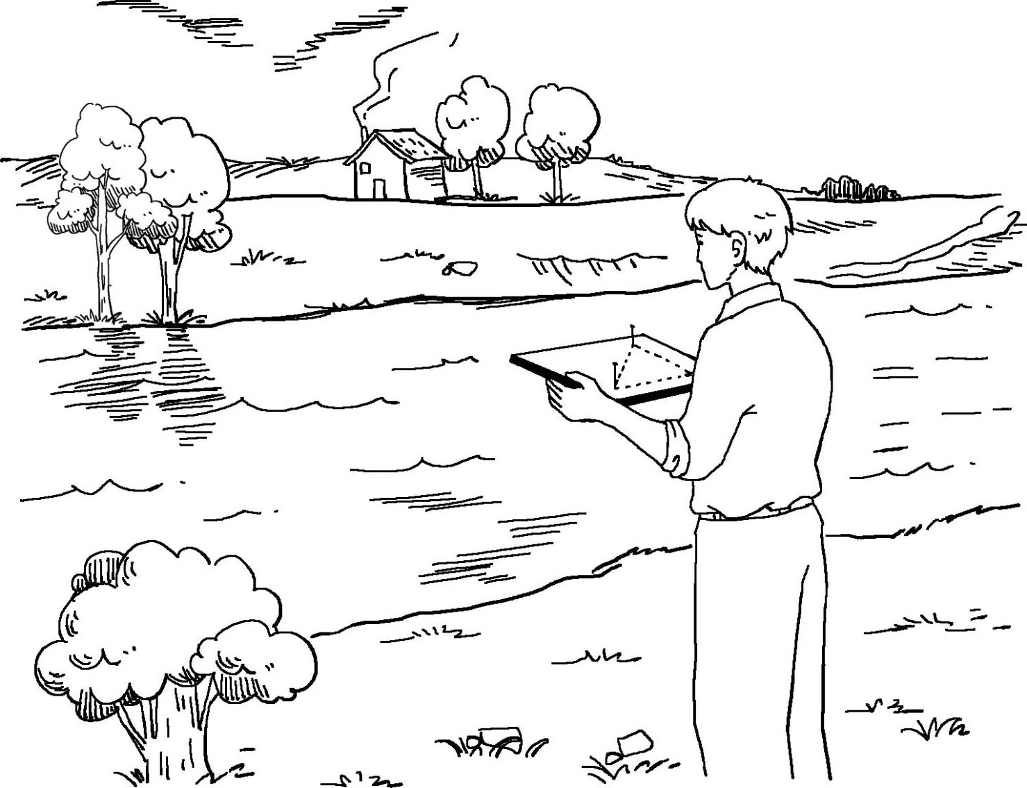 前面我们讲到,不爬上树就可以测量出树有多高,同样你也可以轻而易举地测量出河流的宽度,前提条件是并不需要横渡河流。所以在测量河流宽度的时候我们使用的方法就是测量无法靠近的物体的高度的技巧,即用一些可以测量的距离代替那些未知距离的测量。其实这方面的技巧有很多,下面让我们来看看几种比较容易操作且准确度高的方法,这些方法有个共同的特点就是不必渡河就可测量出河流的宽度。当然测量方法还有很多,只是有的需要复杂的仪器,这里也就不多加介绍了。