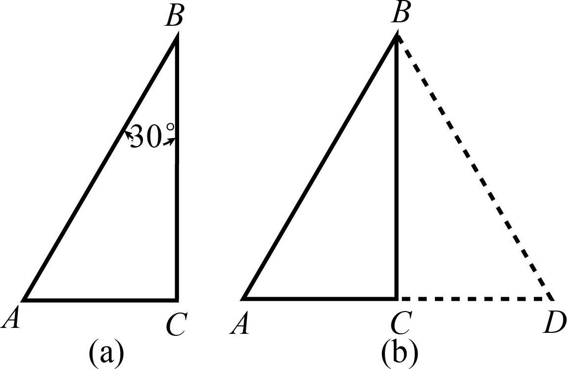 ,那么这个锐角所对应的直角边的长度应该等于斜边长度的一半。这个结论证明起来并不困难,让我们先看图2-1(a),假设这个直角三角形中角