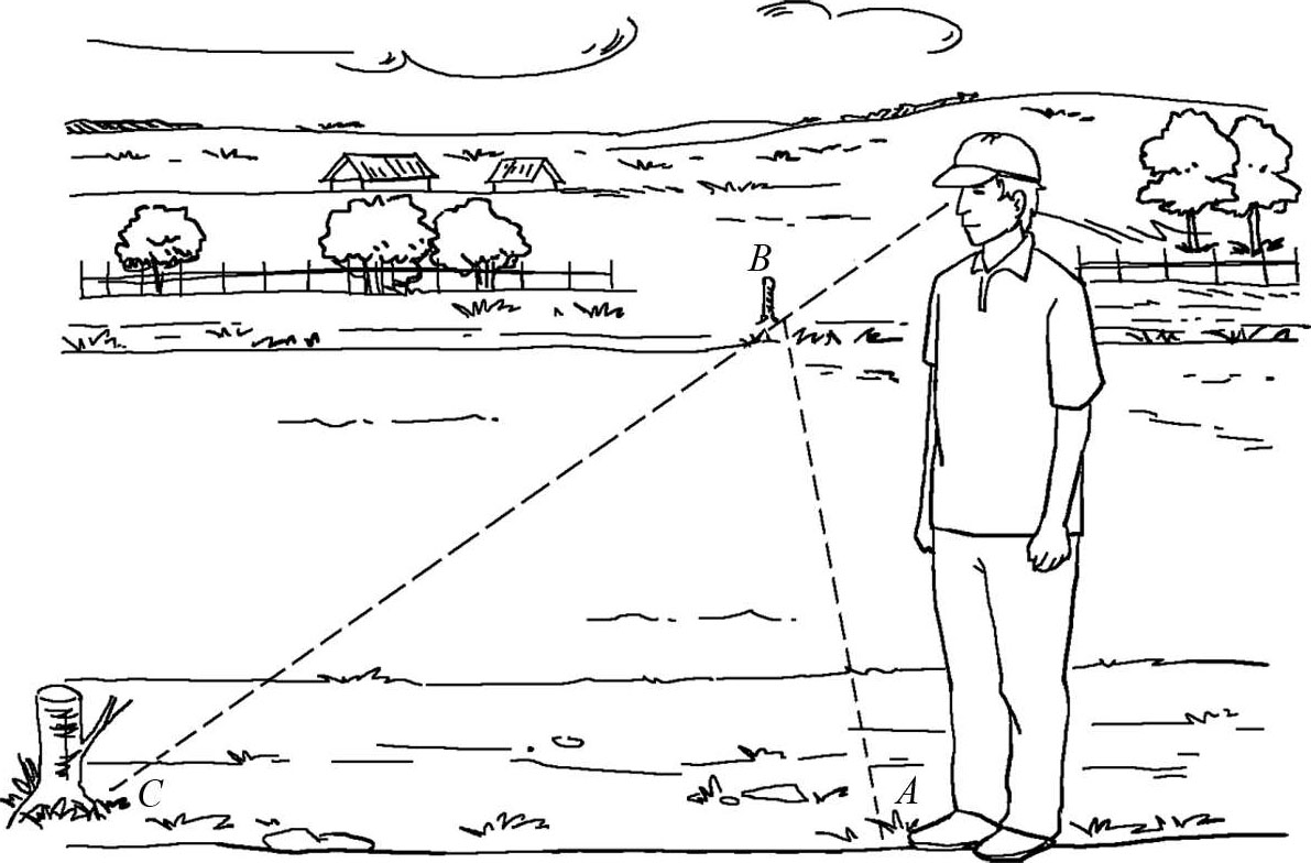 图2-8 使帽檐对准对岸的一点