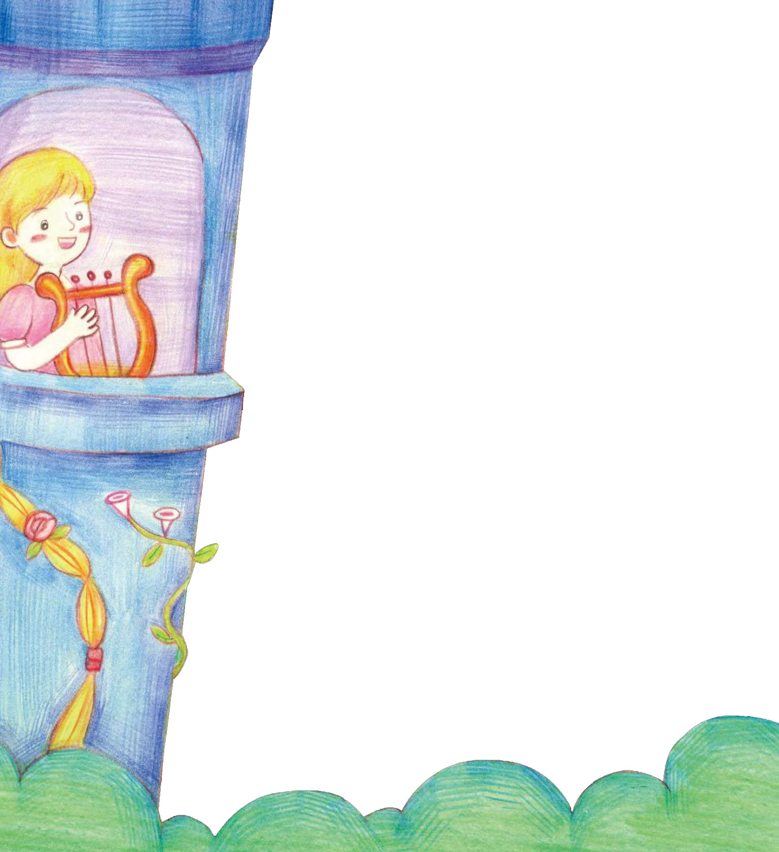 从前,有个姑娘叫莴苣(wō jù),她长着一头金丝般细长美丽的头发。莴苣被一个巫婆收养着,住在森林中的一座塔里。塔既没有楼梯也没有门,只在塔尖上有个小窗户。莴苣经常在窗口唱着动听的歌。