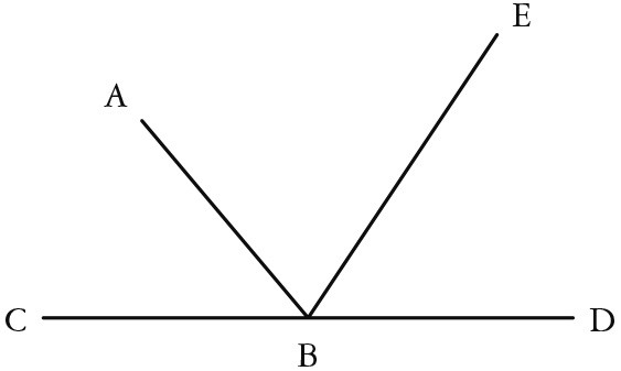 设过任意直线AB上的点B有两条不在AB同侧的直线BC、BD成邻角ABC、ABD,其和等于两直角;