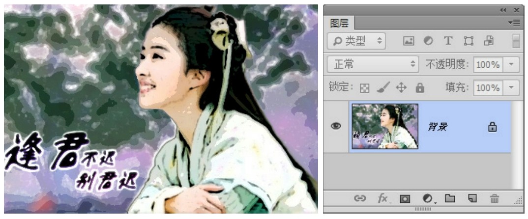 (7)使用历史记录画笔工具在选区内涂抹,将该部分图像恢复到添加“海报边缘”滤镜后的效果(通过在选项栏上修改历史记录画笔工具的不透明度数值,还可以控制图像恢复的程度),如图2.52所示。按Ctrl+D组合键可取消选择。