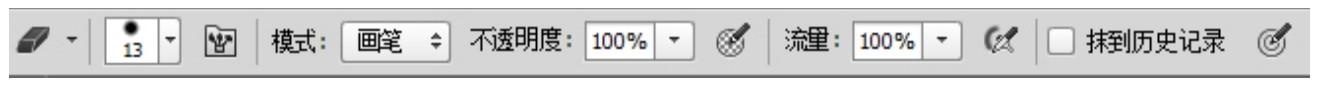 (7)选择橡皮擦工具。单击选项栏上的【切换画笔面板】按钮