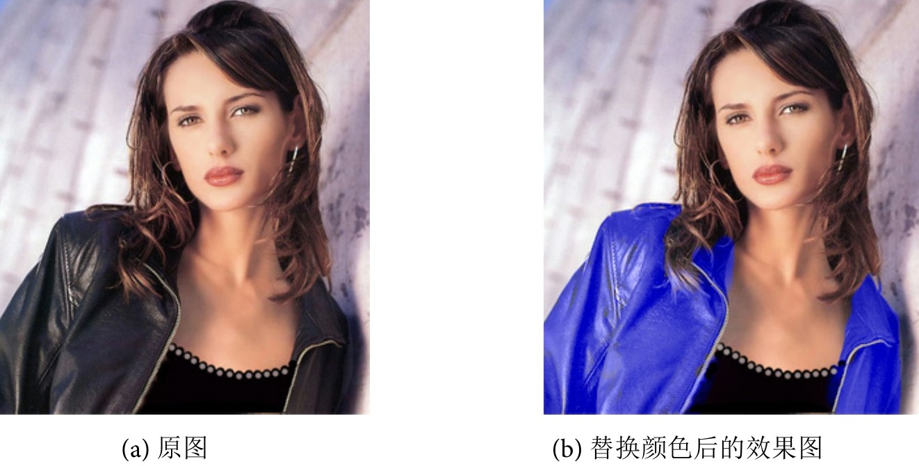 (4)在图片中人物的外套部分拖动光标,将外套的颜色替换为蓝色,效果如图2.47(b)所示。