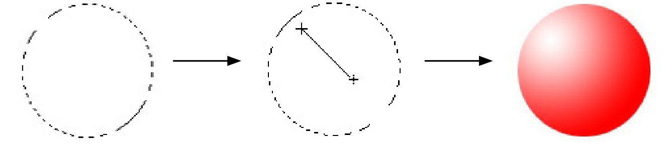 (6)使用上述定义的渐变,在图层1的选区内做线性渐变(按住Shift键,从选区右边界水平拖动到左边界)。按Ctrl + D组合键取消选区,结果如图2.98所示。