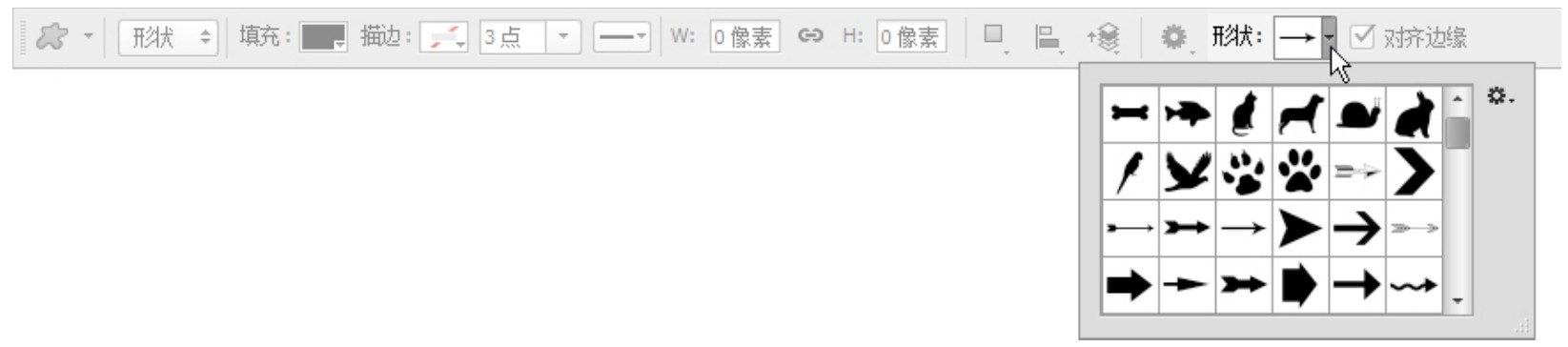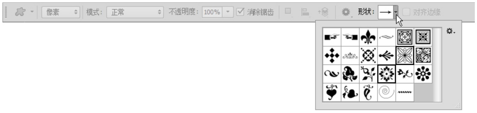 ,将工具模式设置为“像素”。打开“自定形状”拾色器,通过面板菜单加载“装饰”类形状,如图2.92所示。