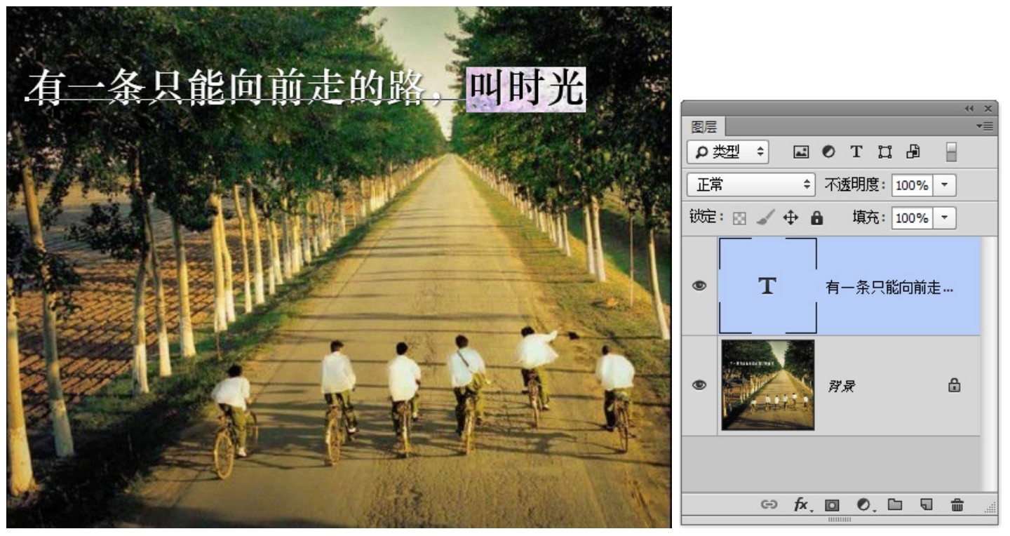 在本例最后文字的处理中,可在中间加空白列,并调整空白列的列间距。若感觉这种方法比较麻烦,最好的办法就是采用两个文本层进行处理。